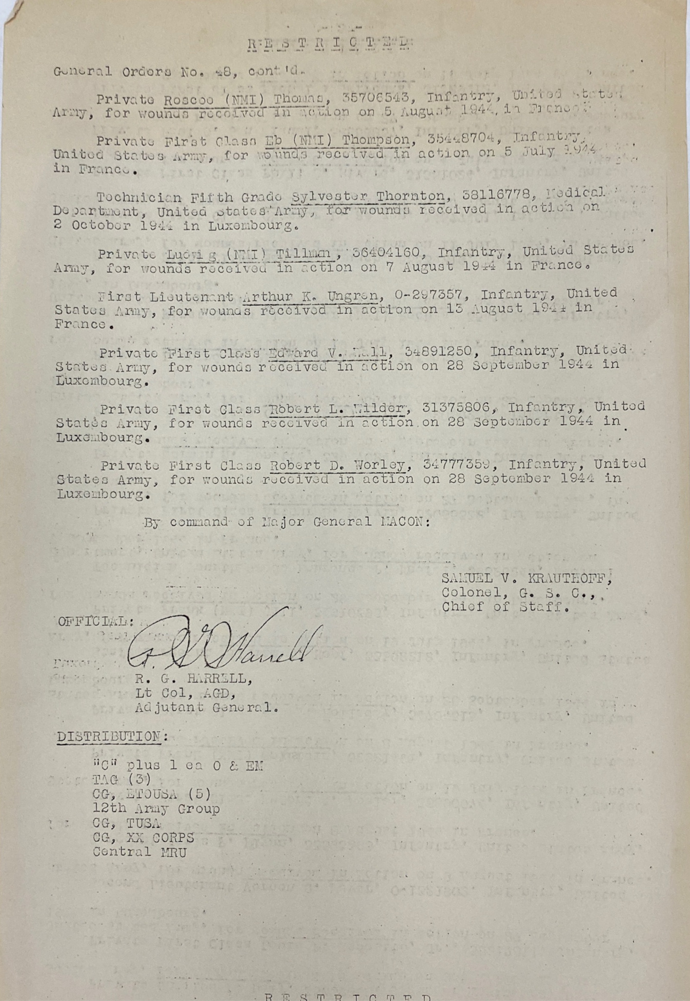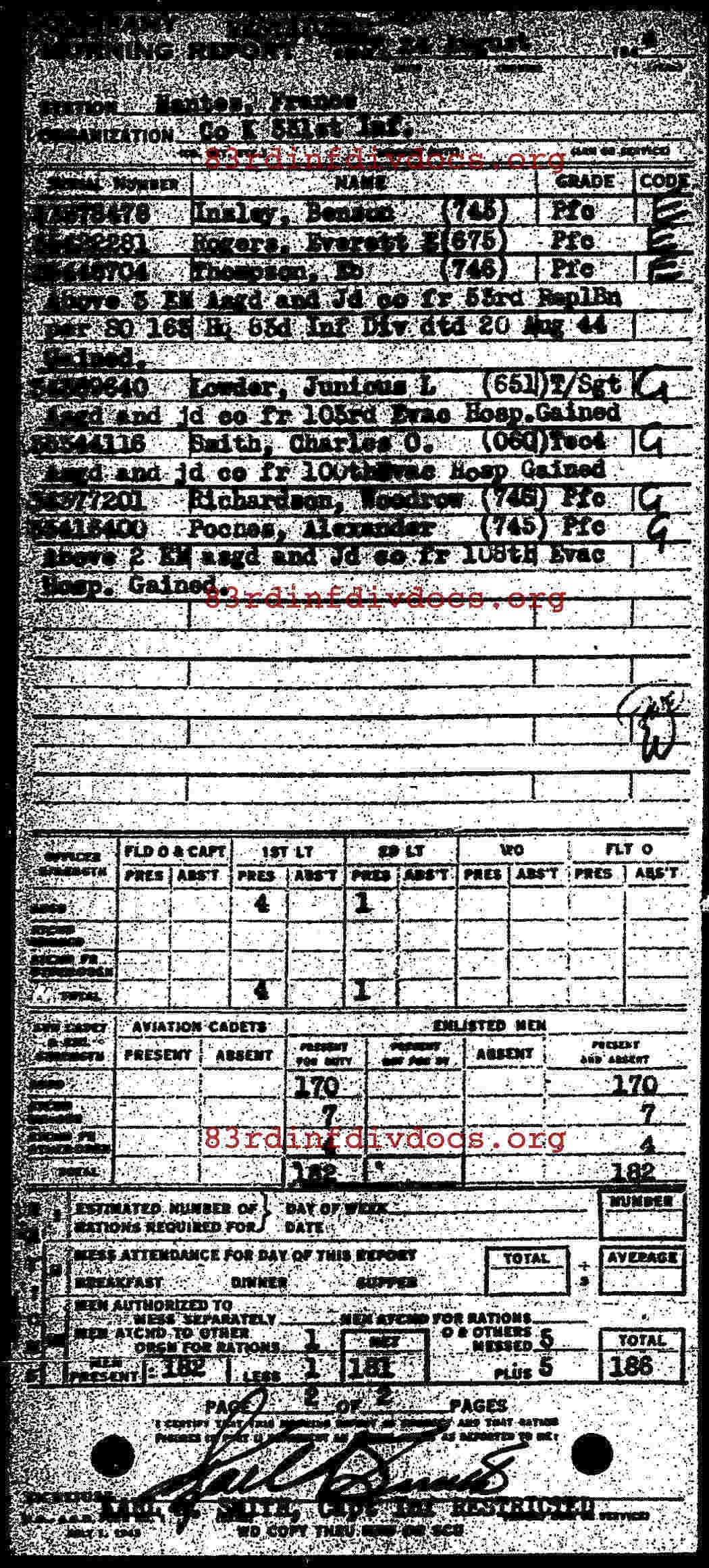 | 1944-08-24 | PFC | Assigned and joined from 53rd Replacement Battalion as of August 24, 1944 | 746 | K / 331 | view page |