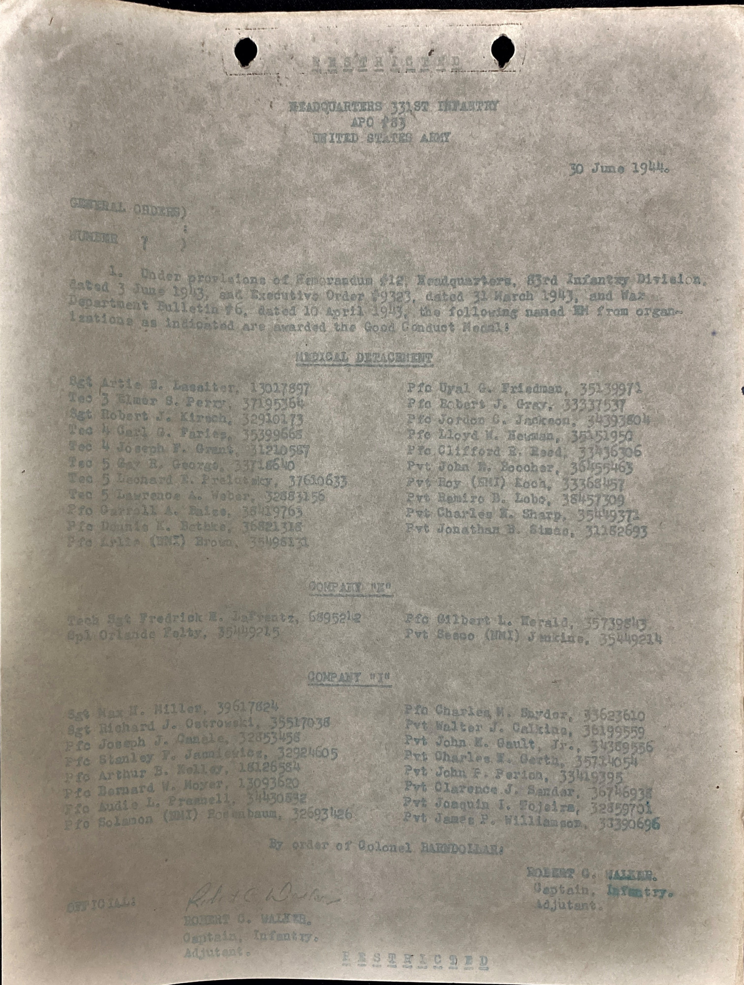 | 1944-09-05 | PVT | Promoted to Private First Class as of September 5, 1944 | 521 | H / 331 | view page |