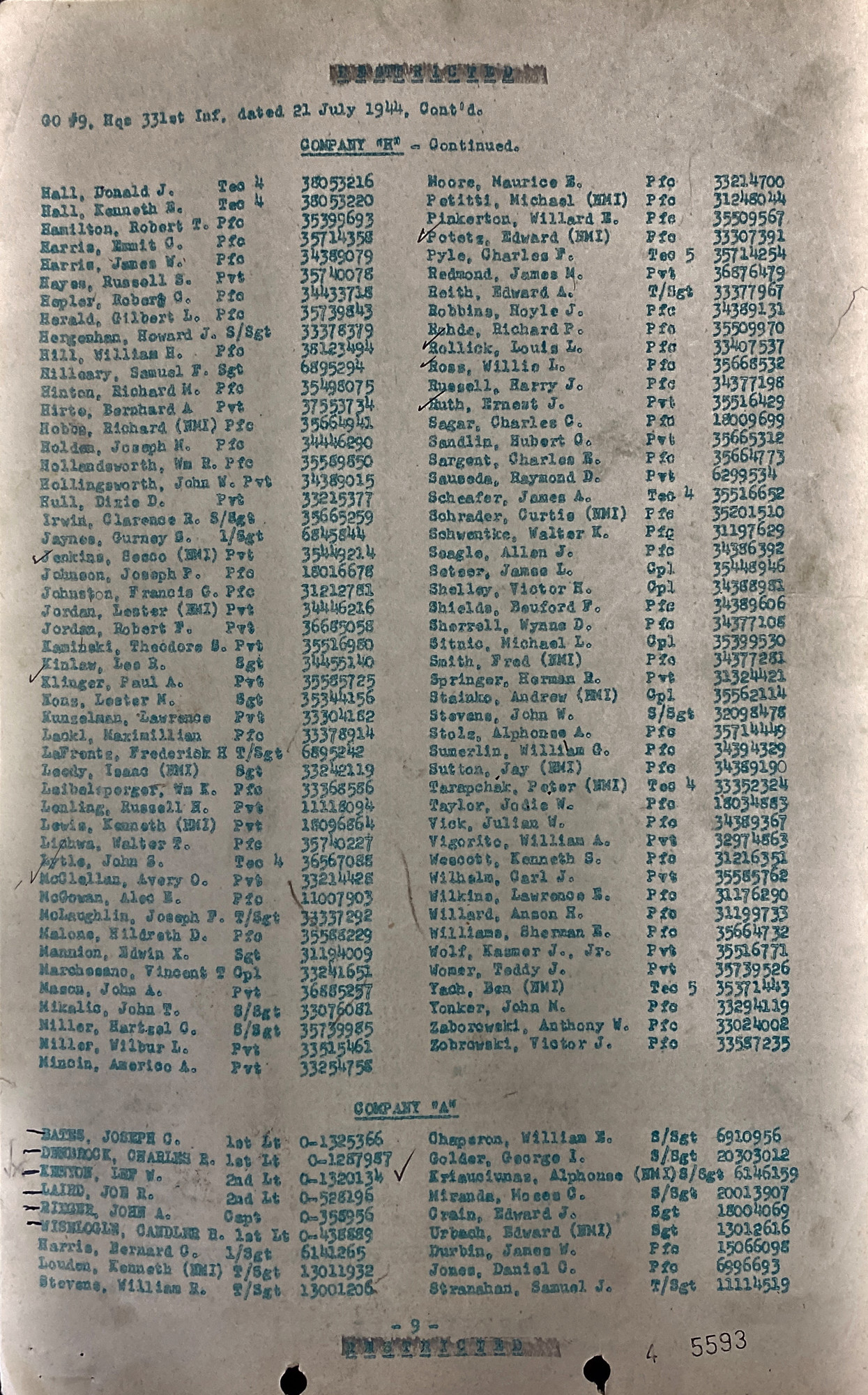 | 1944-09-01 | PVT | Assigned and joined from 48th Replacement Battalion as of August 31, 1944 | 521 | H / 331 | view page |