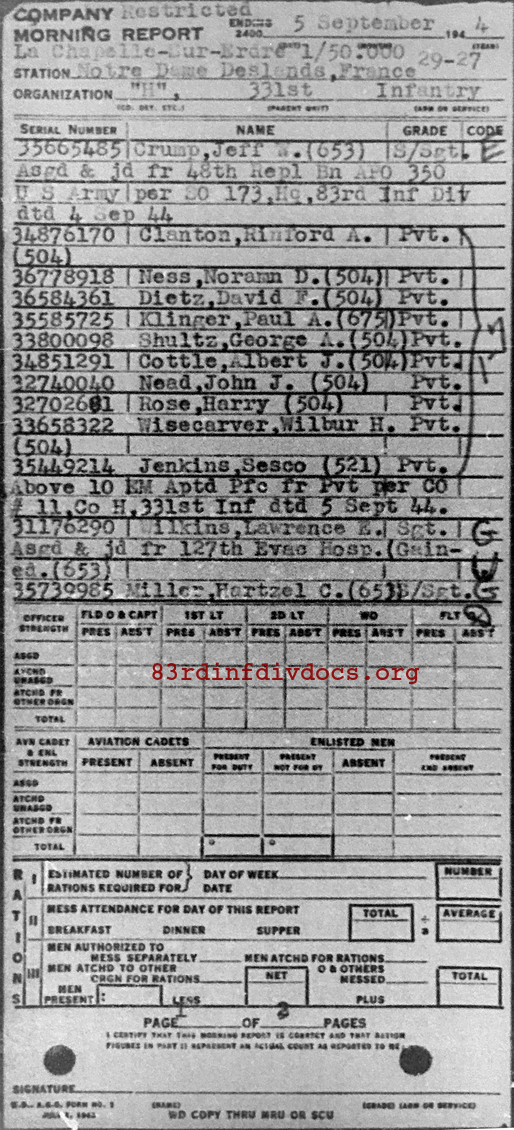 | Unit | H Company, 331st Infantry Regiment, 83rd Infantry Division |