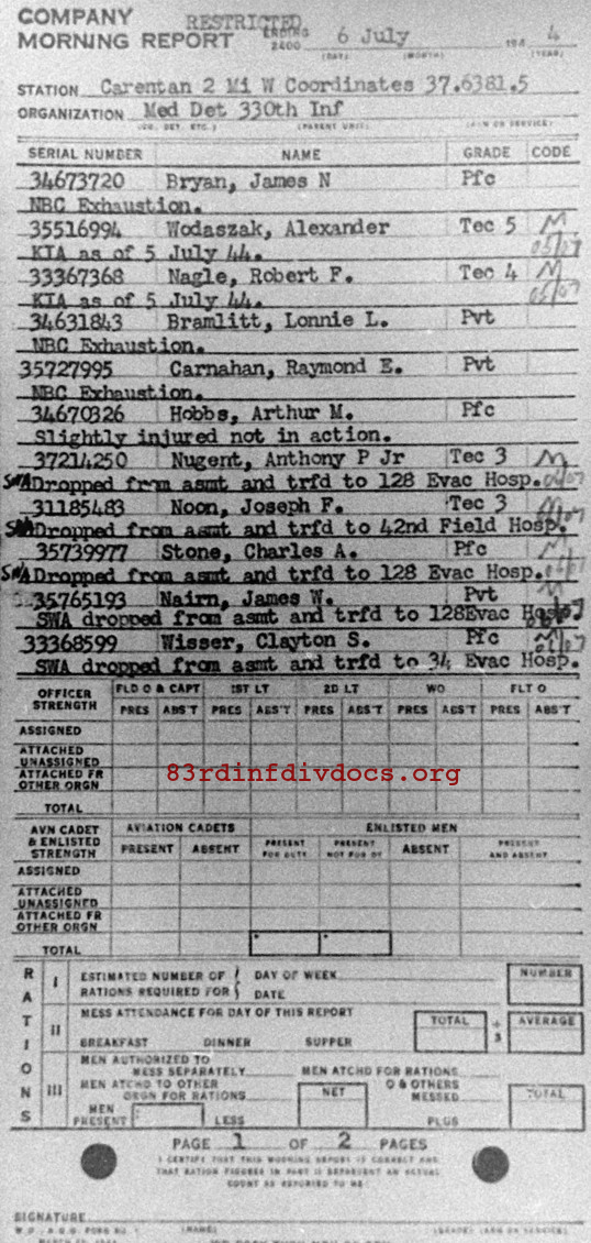 | 1944-07-06 | TEC5 | Killed in action on July 5, 1944 | MEDDET / 330 | view page | |