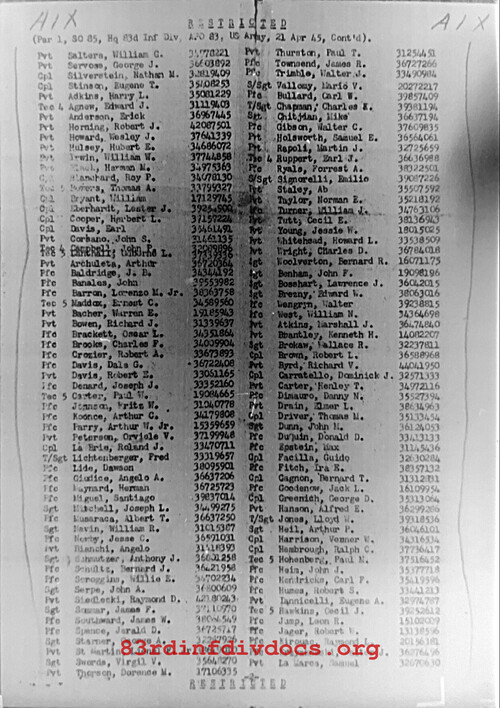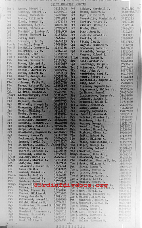 | Unit | 331st Infantry Regiment, 83rd Infantry Division |