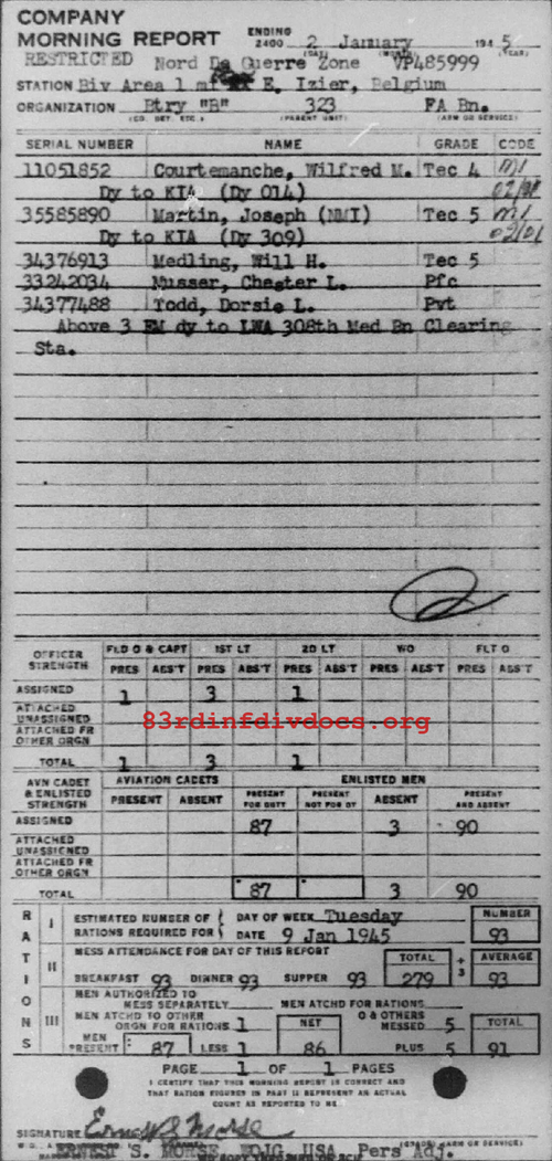 | Unit | 323rd Field Artillery Battalion, 83rd Infantry Division |