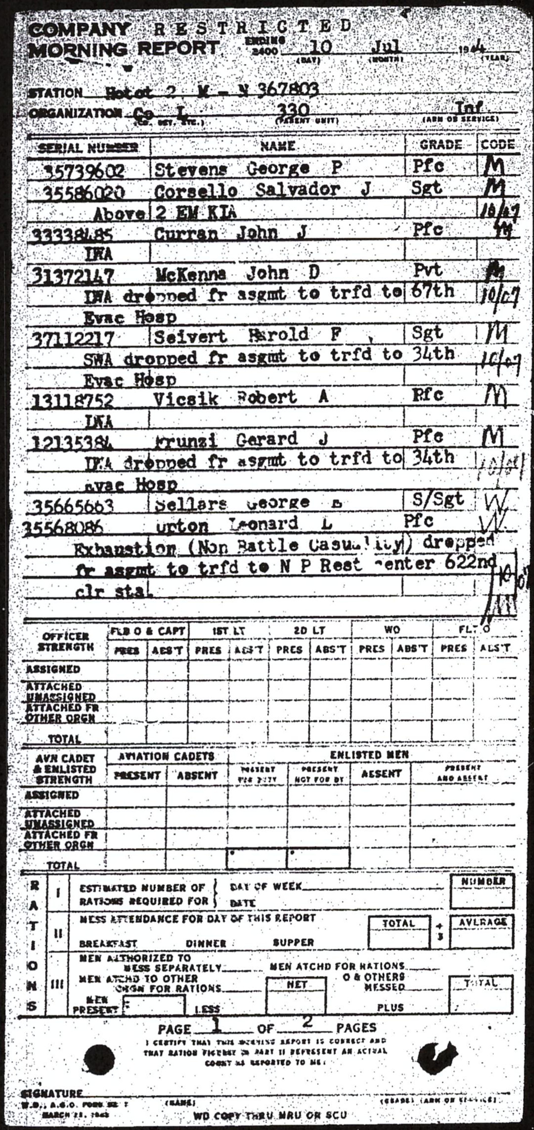 | 1944-07-10 | SGT | Killed in action on July 10, 1944 | L / 330 | view page | |