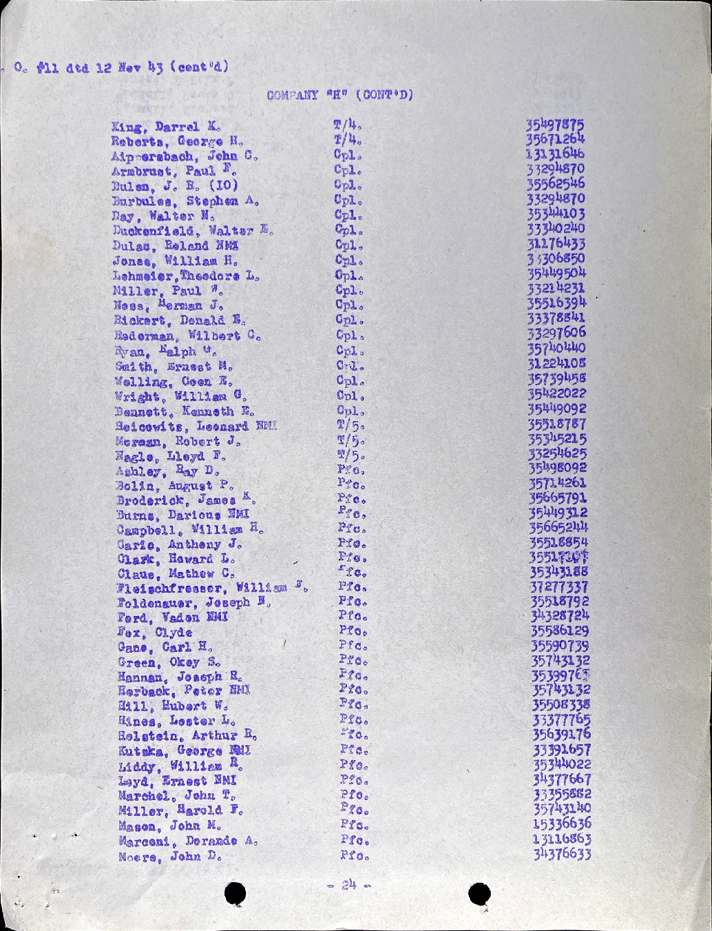 | 1944-07-28 | PFC | Killed in action on July 28, 1944 | 504 | H / 329 | view page |