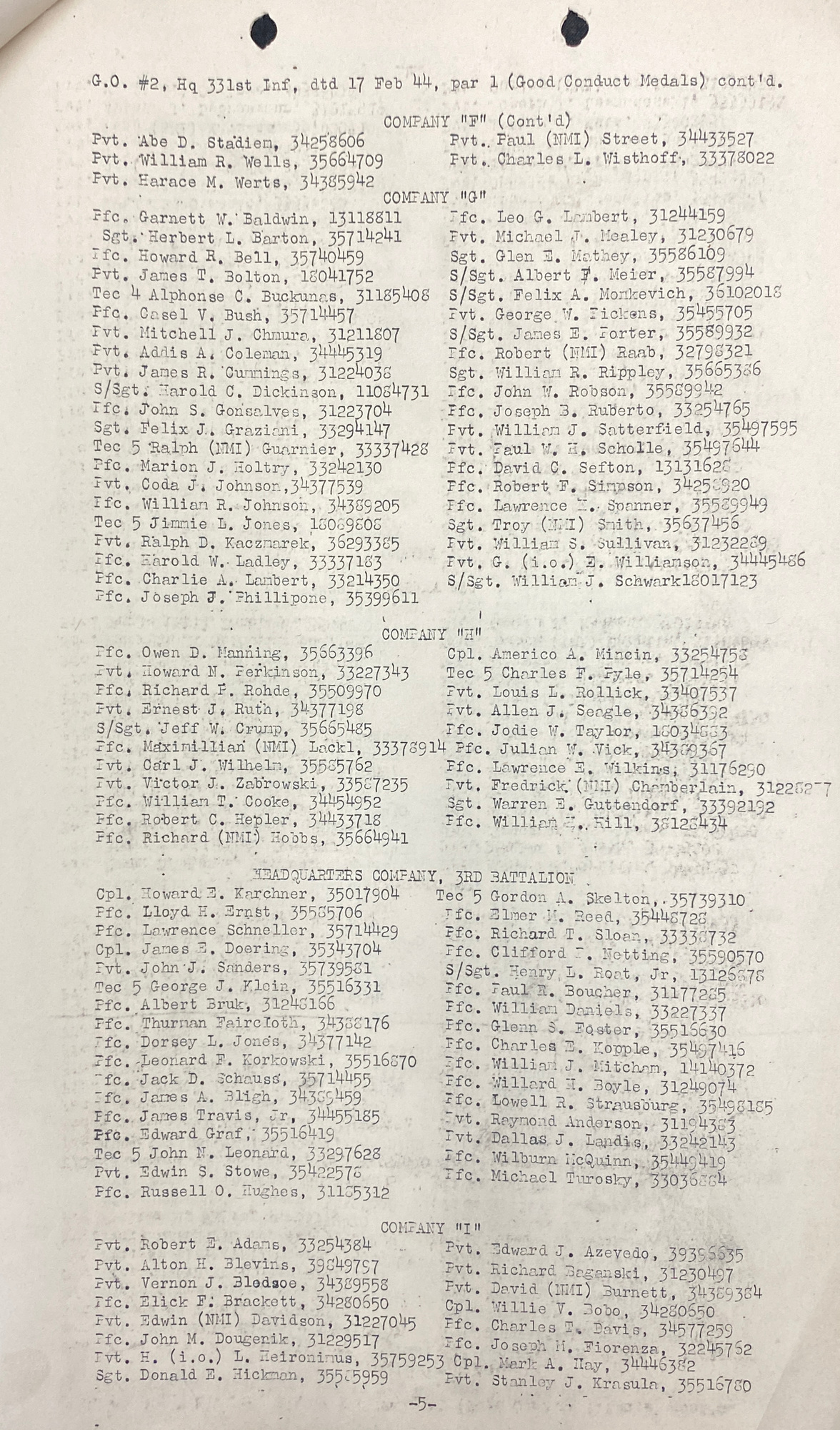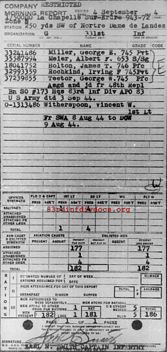 | Unit | G Company, 331st Infantry Regiment, 83rd Infantry Division |