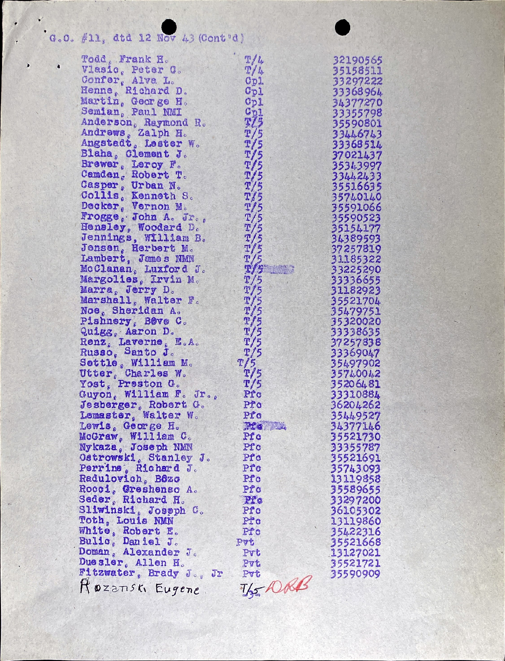 | 329 / 1943 / #11 | PFC |