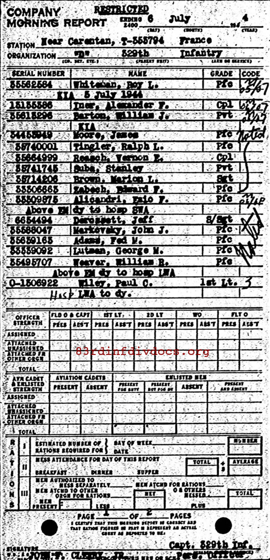 | 1944-07-06 | PVT | Killed in action on July 6, 1944 | D / 329 | view page | |
