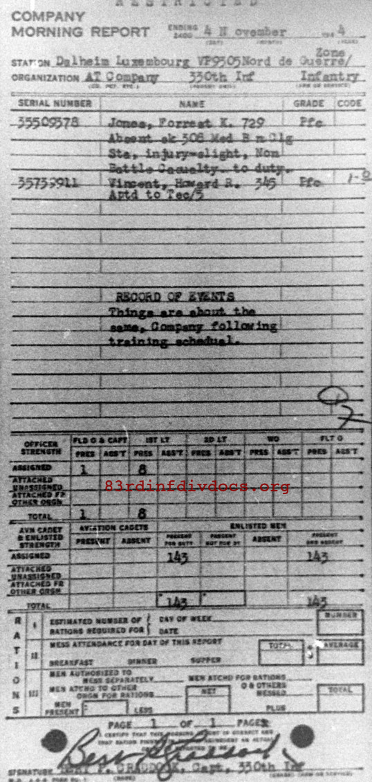 | Unit | 330th Infantry Regiment, 83rd Infantry Division |