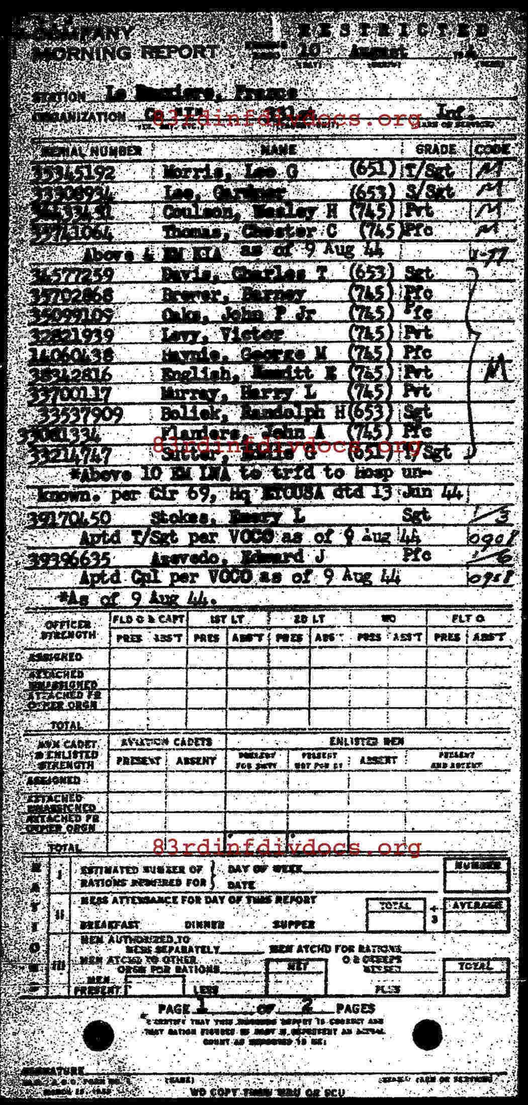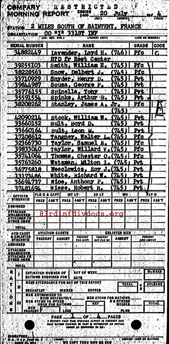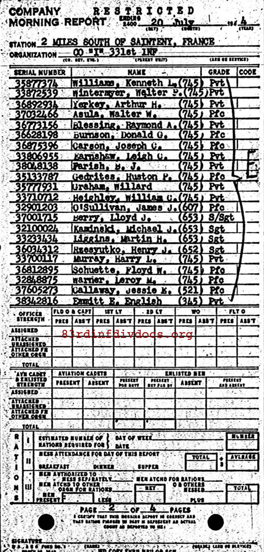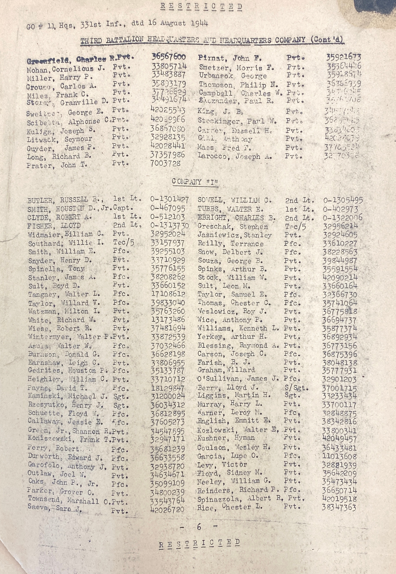 | 1944-08-10 | PFC | Killed in action on August 9, 1944 | 745 | I / 331 | view page |