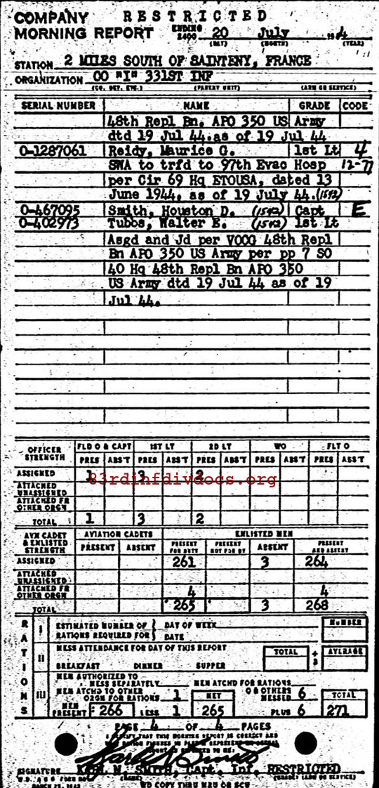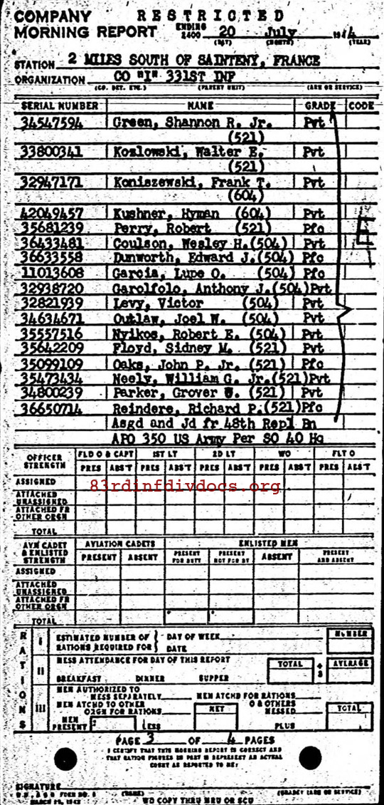 | 1944-07-20 | PFC | Assigned and joined from 48th Replacement Battalion as of July 19, 1944 | 745 | I / 331 | view page |
