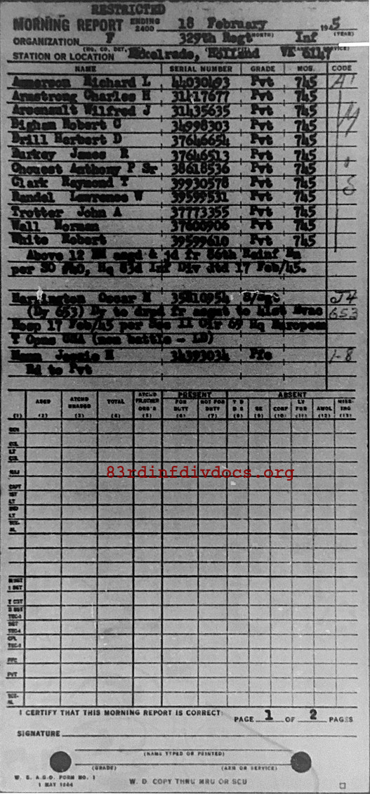 | 1945-03-31 | SSGT | Assigned and joined from 86th Reinforcement Battalion as of March 29, 1945 | 653 | F / 329 | view page |