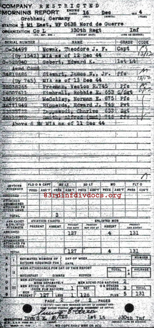 | Unit | 330th Infantry Regiment, 83rd Infantry Division |