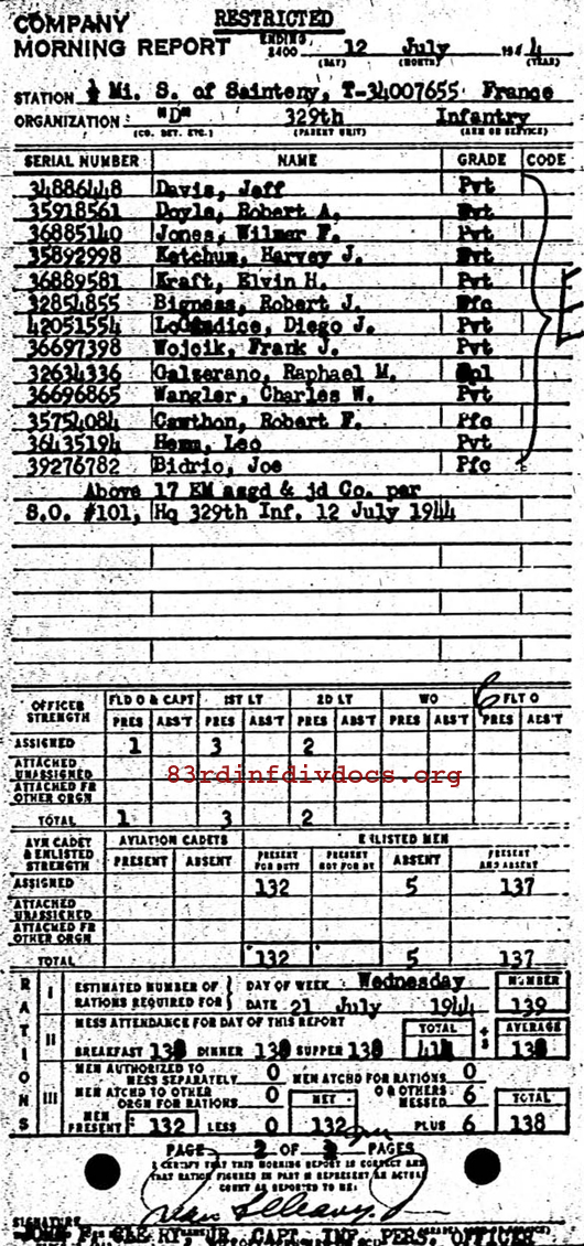 | 1944-07-12 | PVT | Assigned and joined from unknown unit as of July 12, 1944 | D / 329 | view page | |