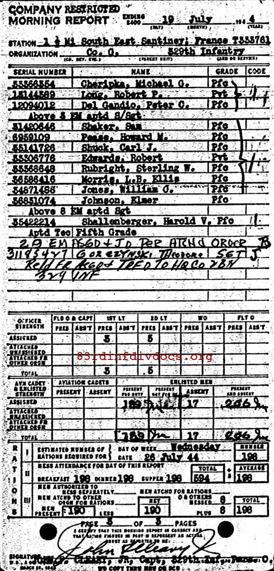 | Unit | G Company, 329th Infantry Regiment, 83rd Infantry Division |