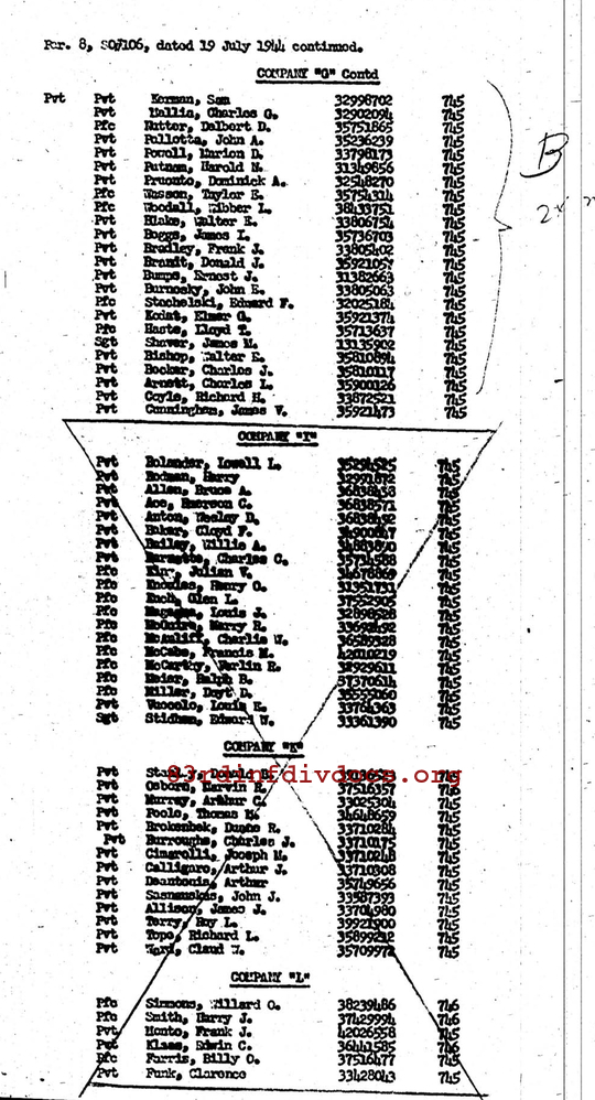 | 1944-08-11 | PVT | Killed in action on August 5, 1944 | 745 | G / 329 | view page |