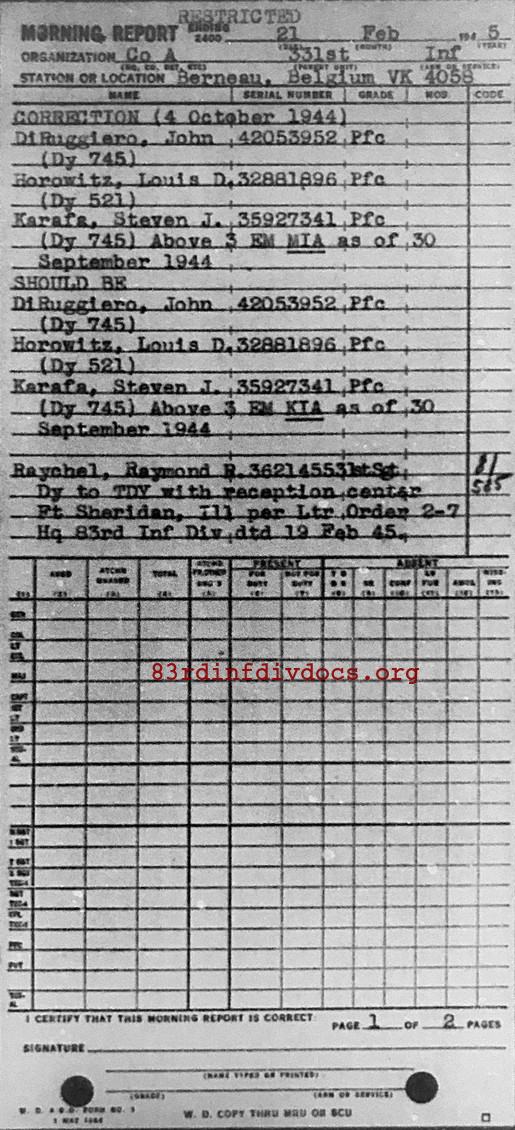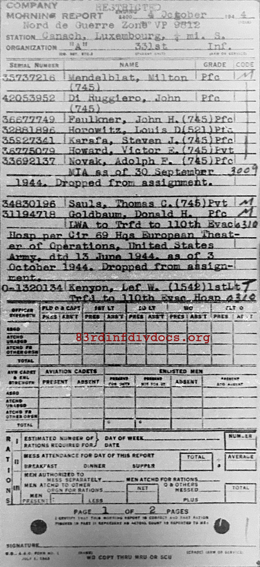 | 1944-10-04 | PFC | Missing in action as of September 30, 1944 | 745 | A / 331 | view page |