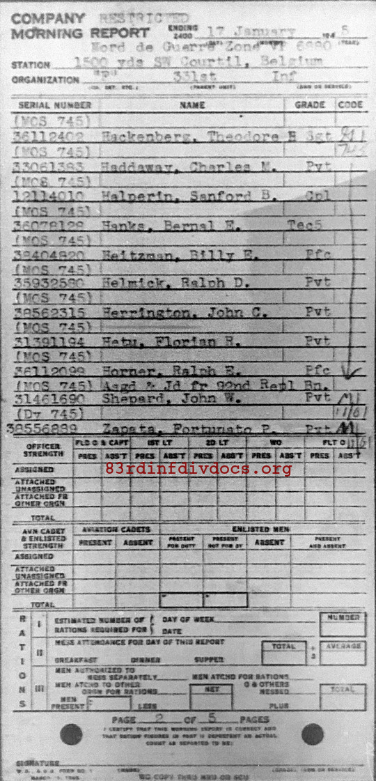 | 1945-01-17 | SGT | Assigned and joined from 92nd Replacement Battalion as of January 17, 1945 | 745 | F / 331 | view page |