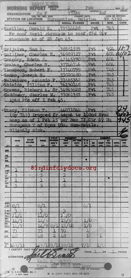 | Unit | F Company, 331st Infantry Regiment, 83rd Infantry Division |