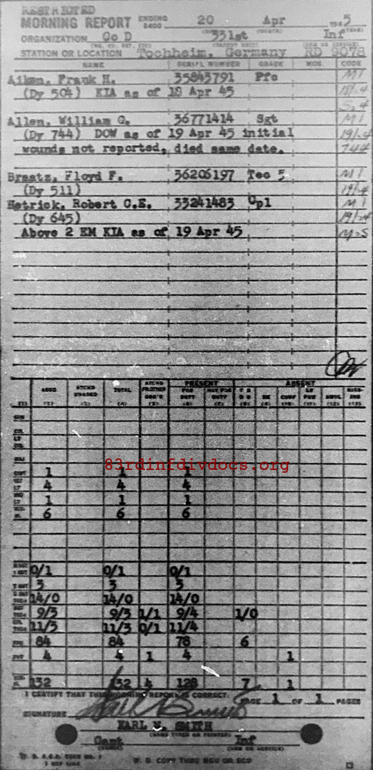| Unit | HQ Platoon, D Company, 331st Infantry Regiment, 83rd Infantry Division |