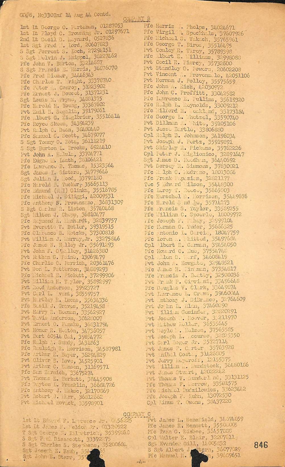 | 330 / 1944 / #8 | PFC |