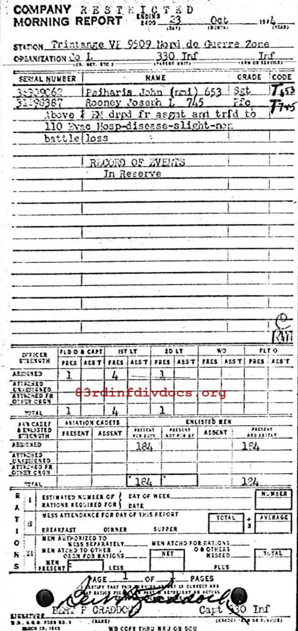 Assigned and joined from G Company, 330th Infantry Regiment as of October 1, 1944 |