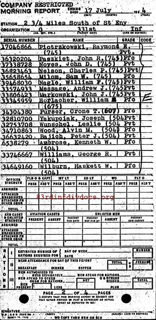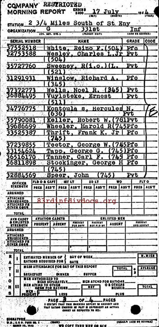 | Unit | 331st Infantry Regiment, 83rd Infantry Division |