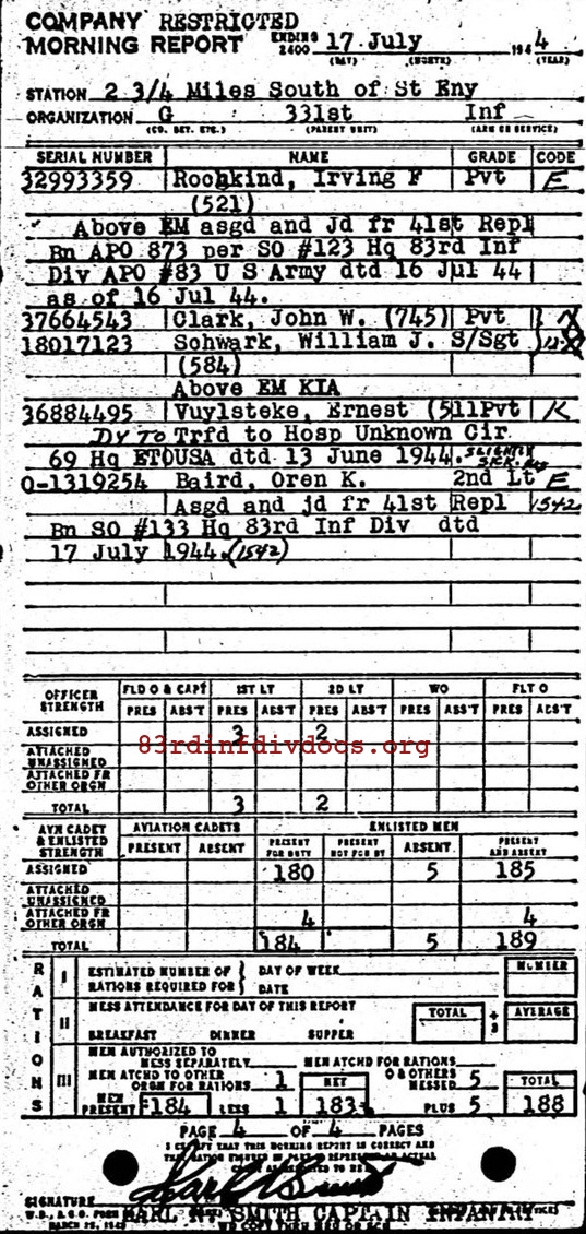 | 1944-07-17 | PFC | Assigned and joined from 41st Replacement Battalion as of July 17, 1944 | 745 | G / 331 | view page |
