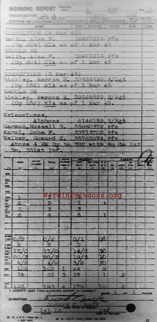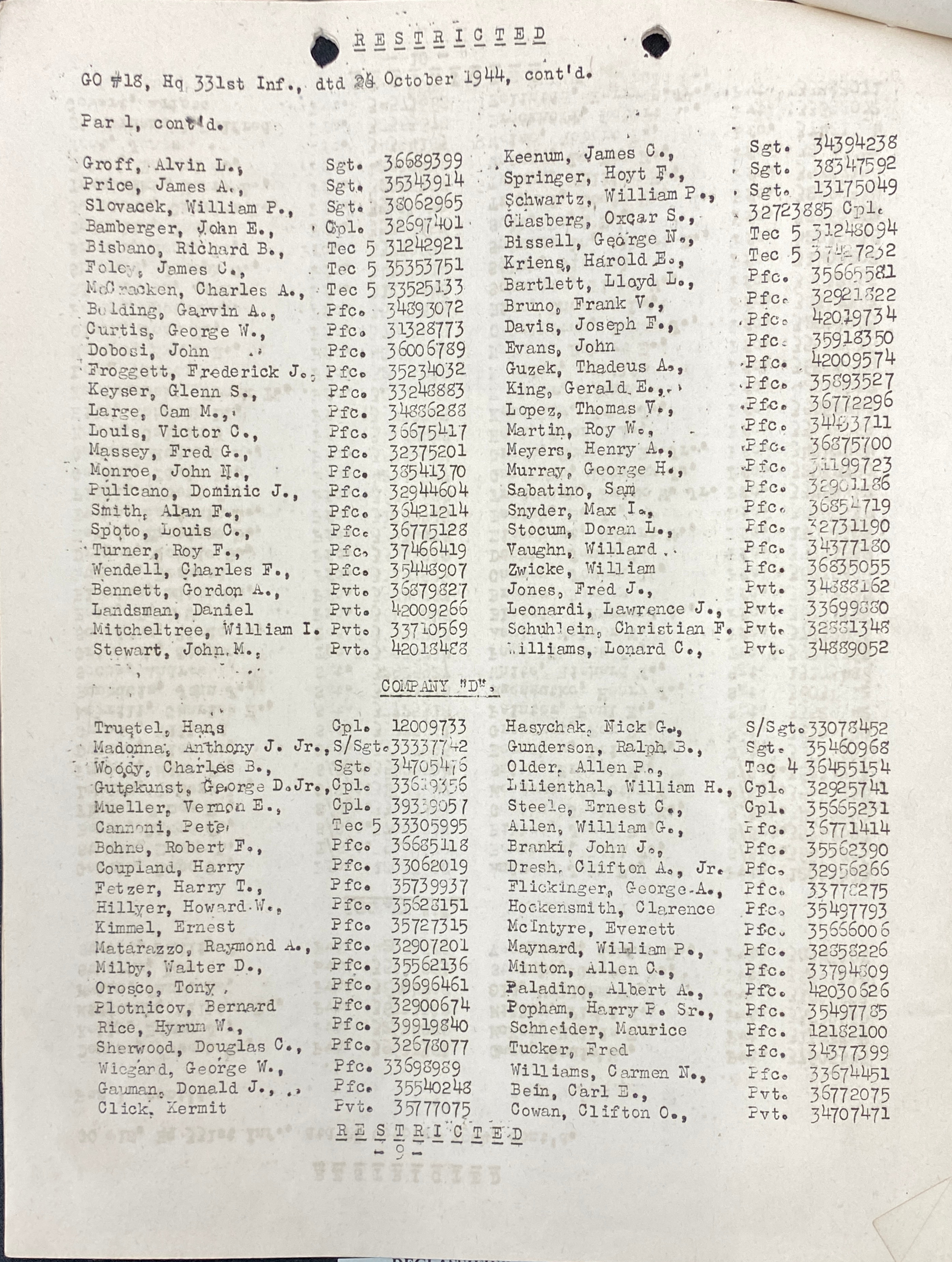 | Unit | A Company, 331st Infantry Regiment, 83rd Infantry Division |