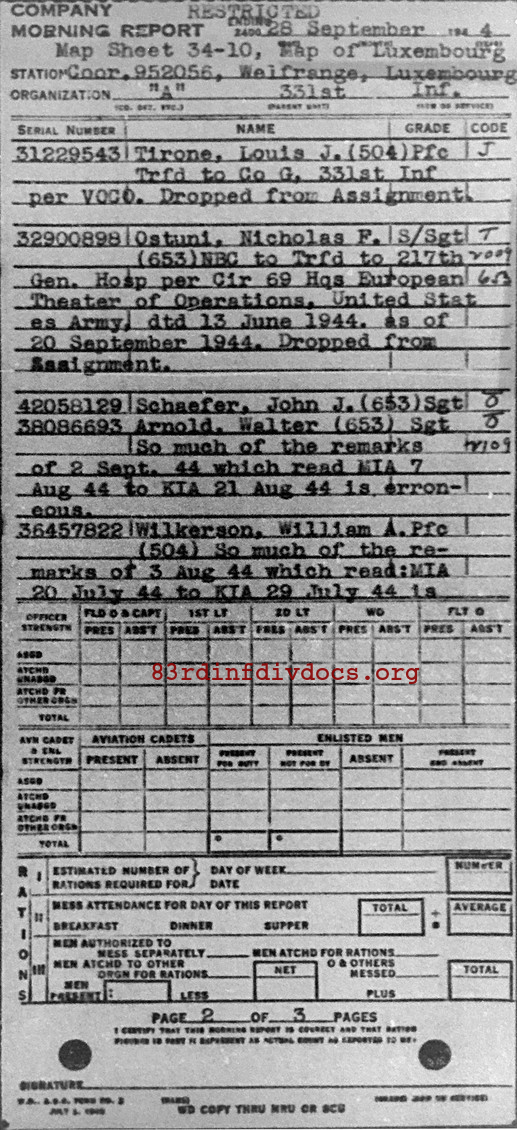 | 1944-09-28 | PFC | Killed in action on July 16, 1944, which corrects MR of August 3, 1944 | 504 | A / 331 | view page |