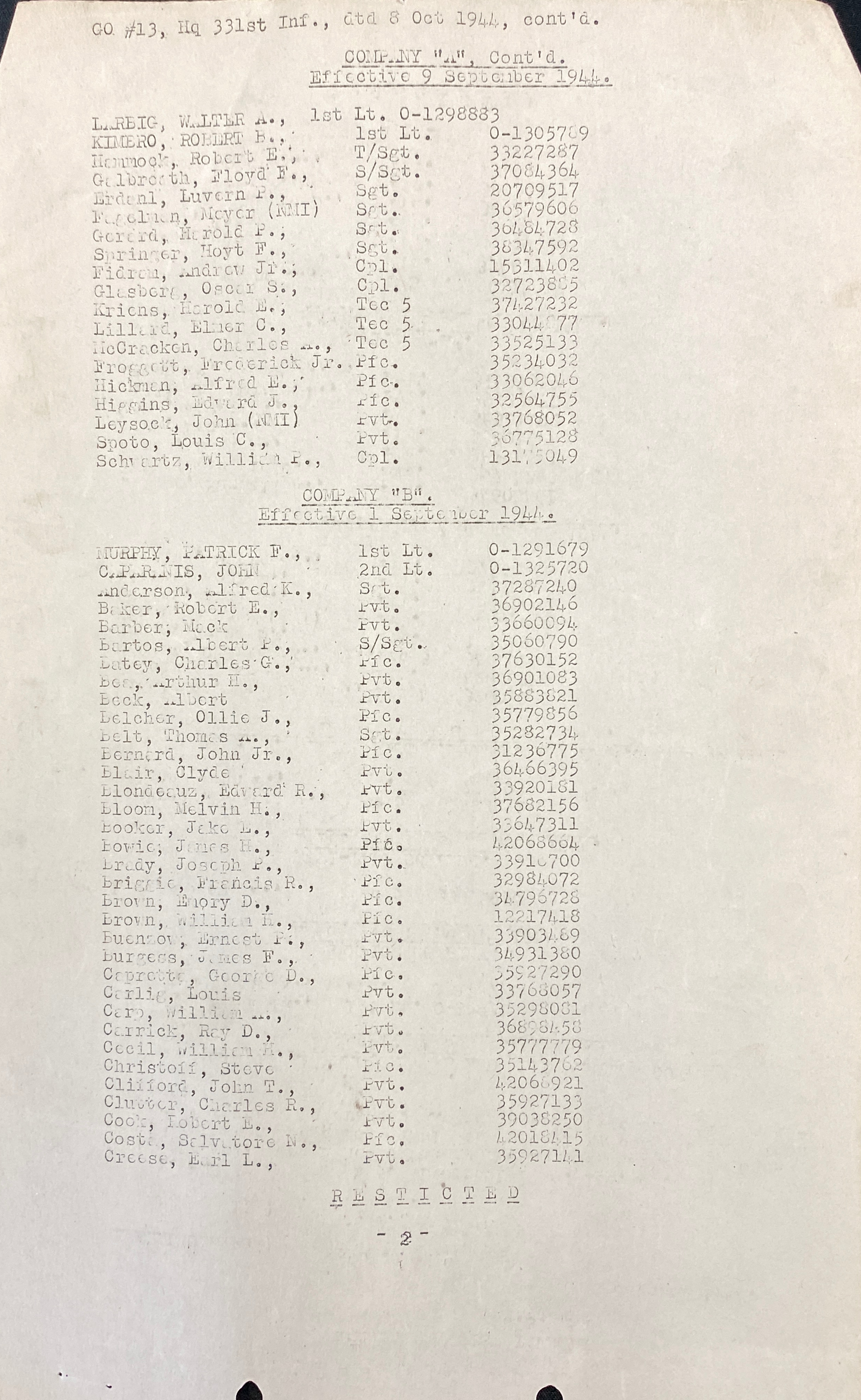 | 1944-10-15 | PVT | Promoted to Private First Class as of October 15, 1944 | 746 | B / 331 | view page |