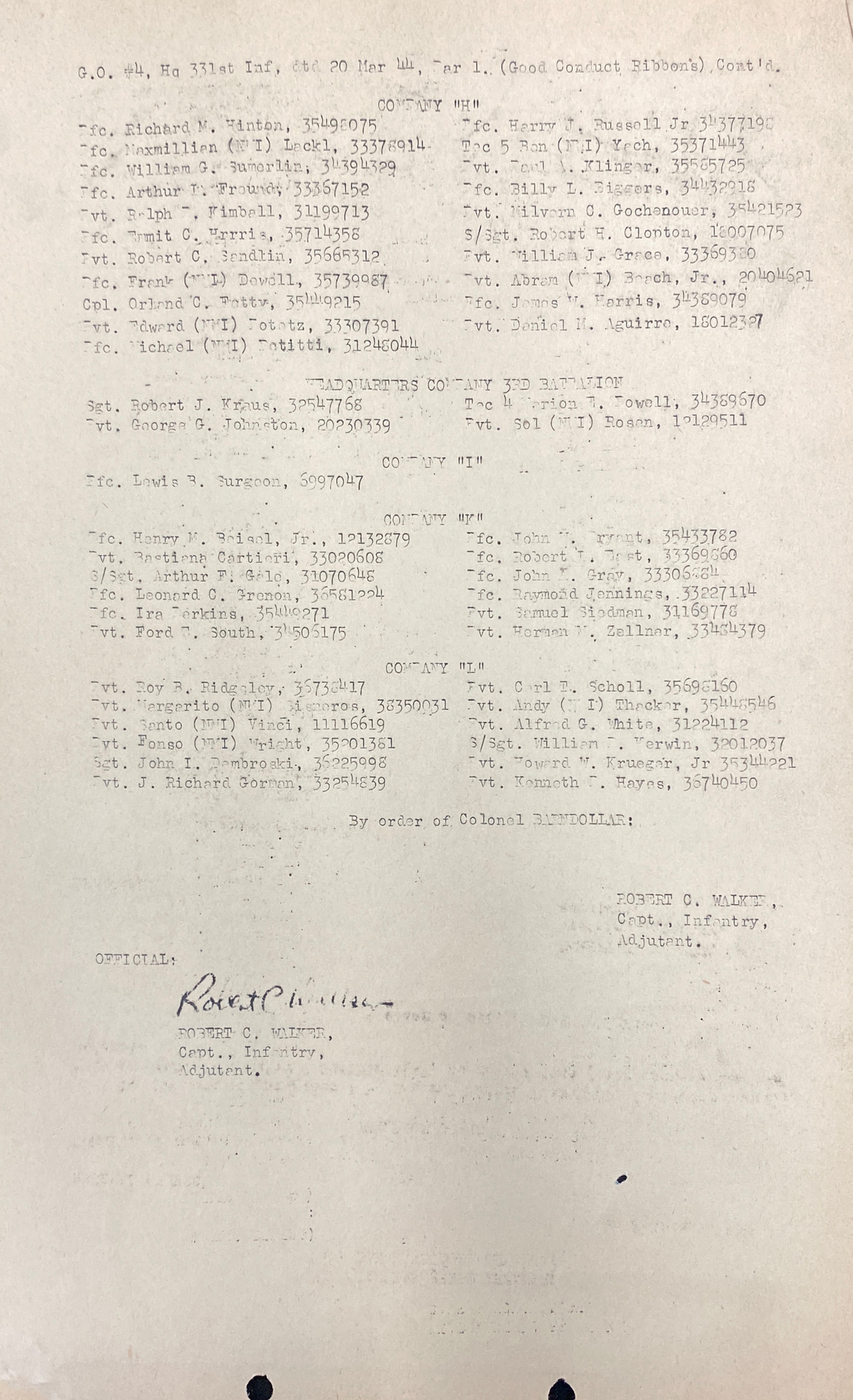 | 331 / 1944 / #4 | PFC |