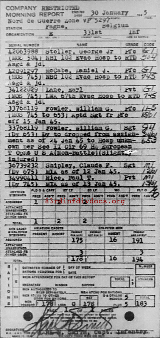 | 1945-01-30 | SGT | Missing in action as of January 12, 1945 | 675 | E / 331 | view page |