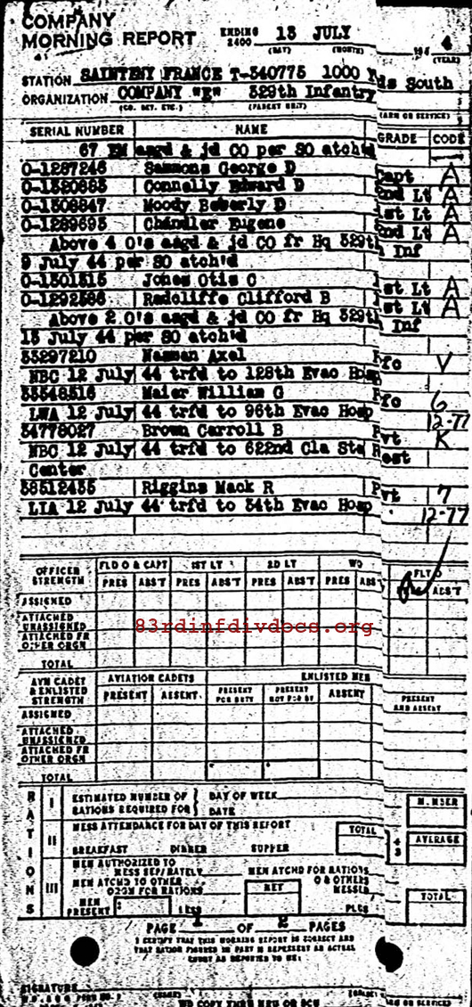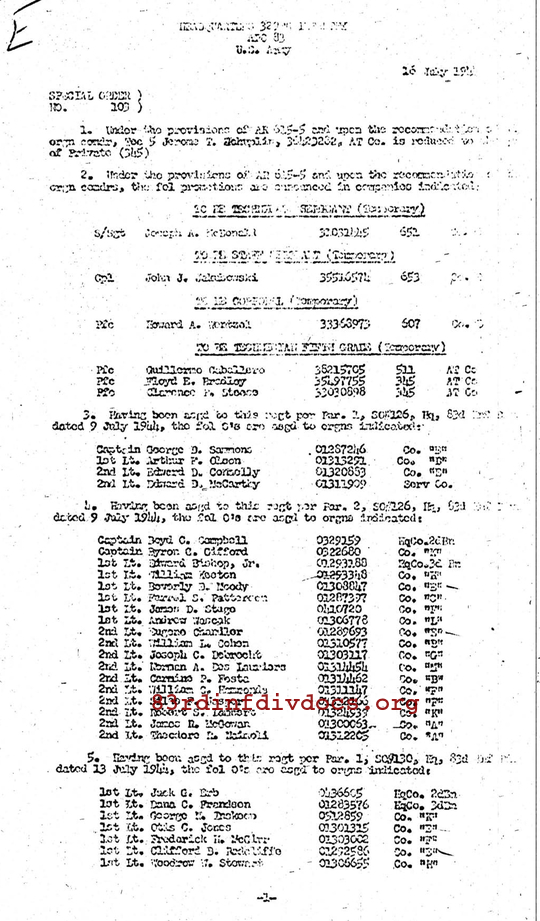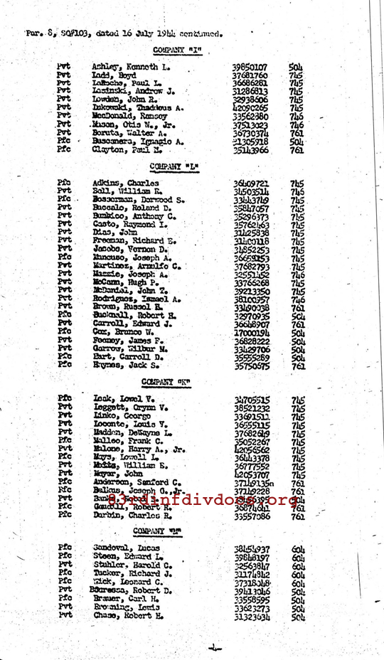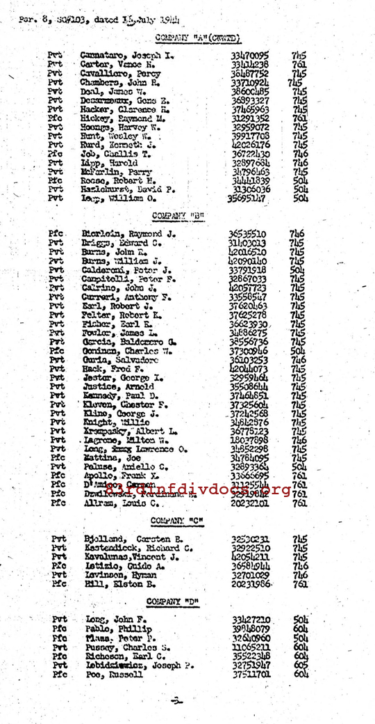 | 1944-08-03 | PVT | Killed in action on July 27, 1944 | 745 | E / 329 | view page |