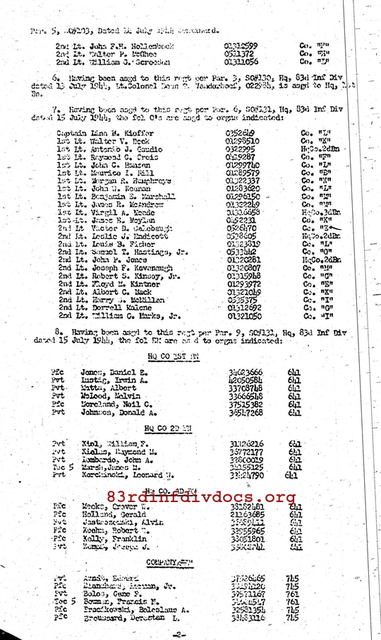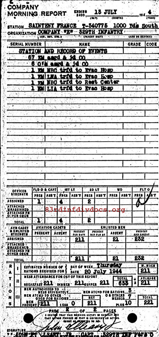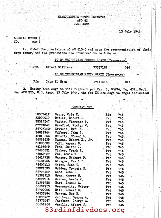 | Unit | E Company, 329th Infantry Regiment, 83rd Infantry Division |