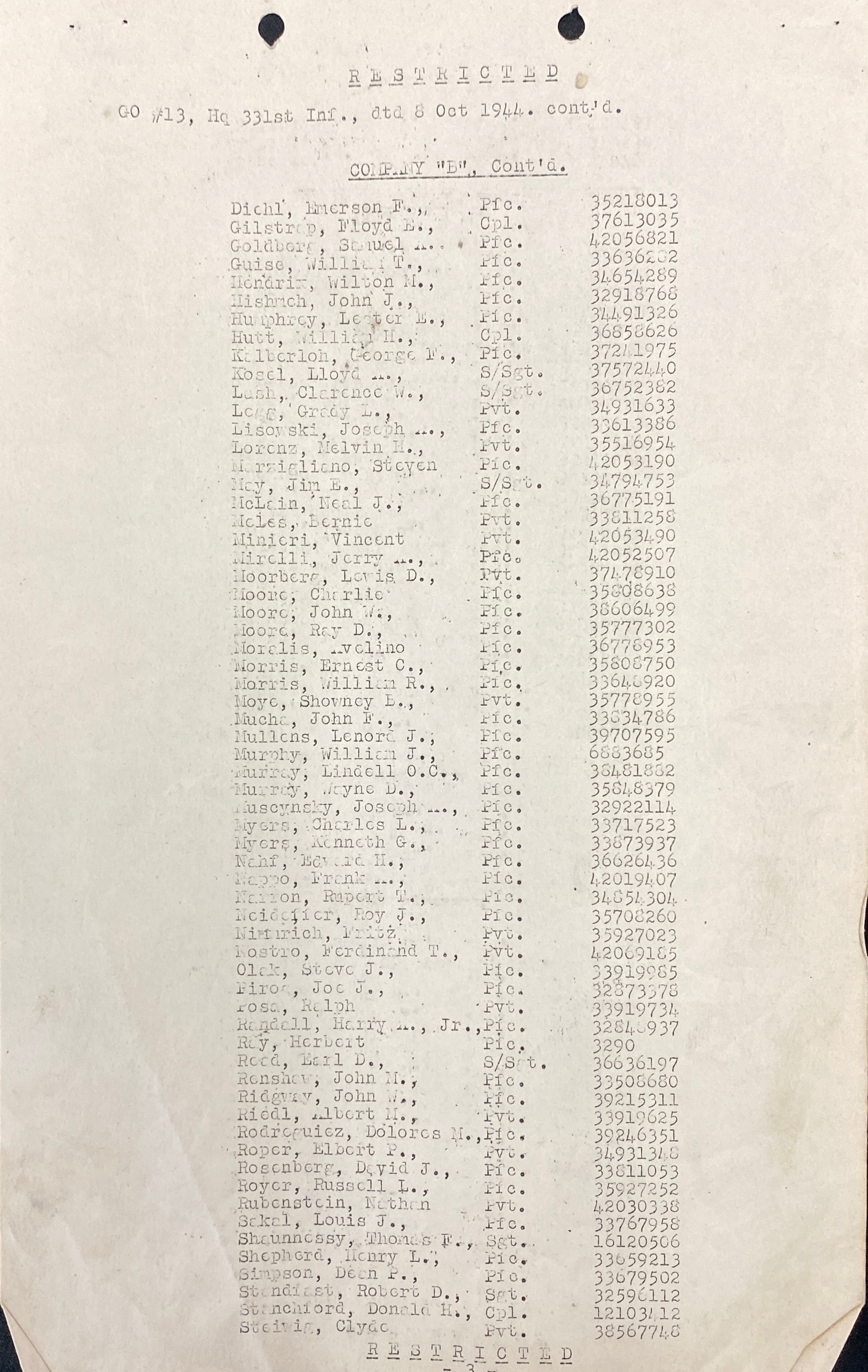 | Unit | 331st Infantry Regiment, 83rd Infantry Division |