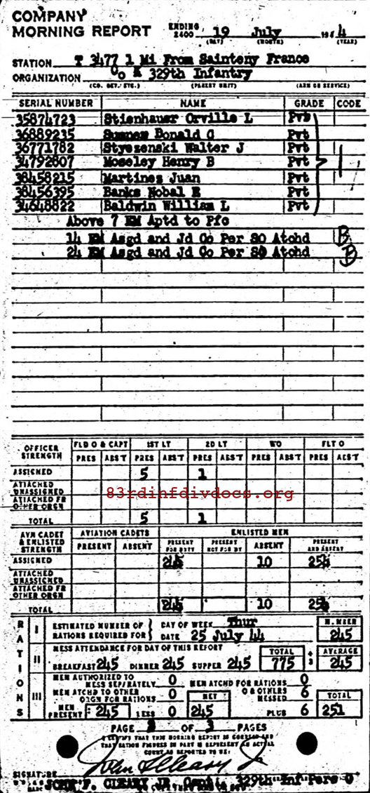 | 1944-07-19 | PVT | Assigned and joined from unknown unit as of July 19, 1944 | 745 | K / 329 | view page |