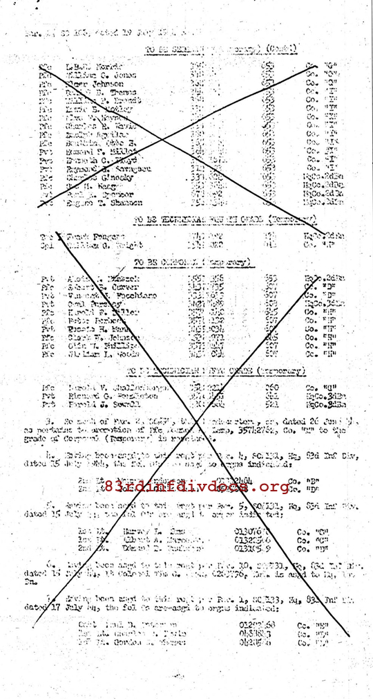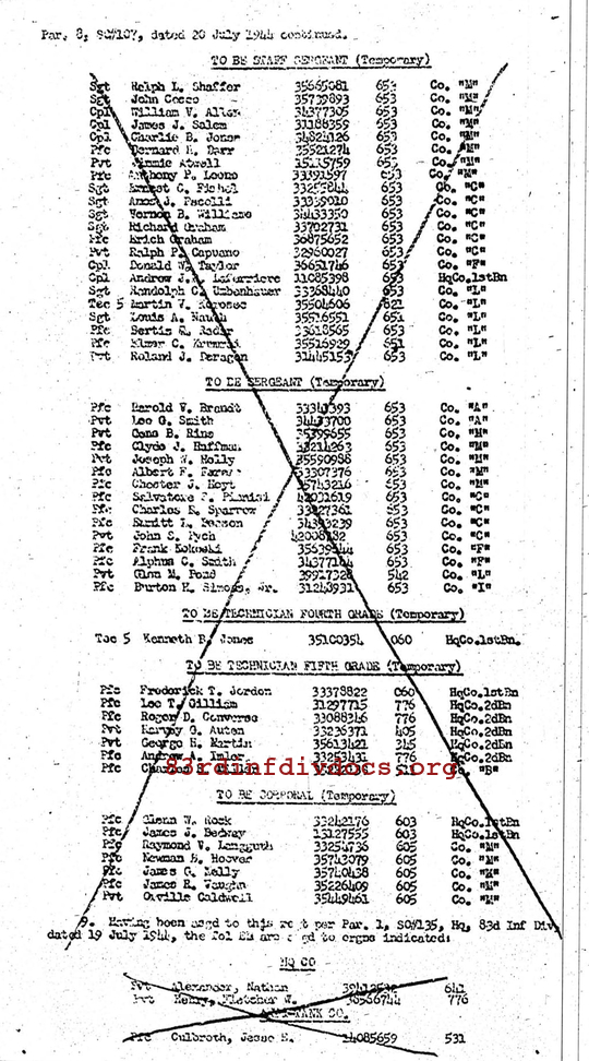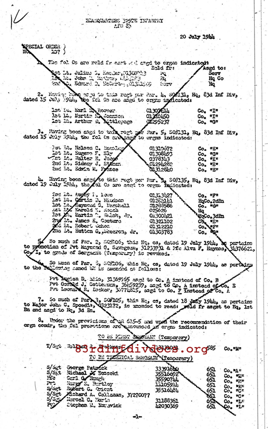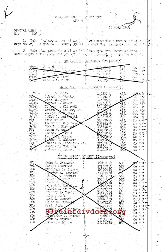 | Unit | K Company, 329th Infantry Regiment, 83rd Infantry Division |