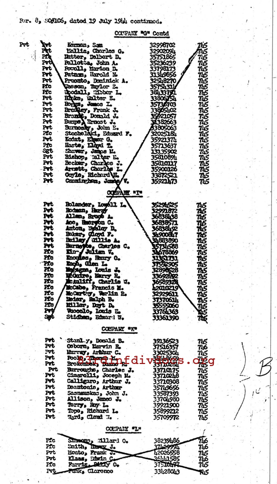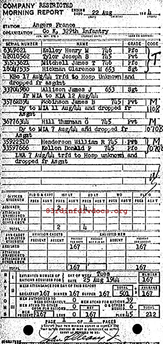 | 1944-08-22 | PVT | Missing in action as of August 7, 1944 | 745 | K / 329 | view page |