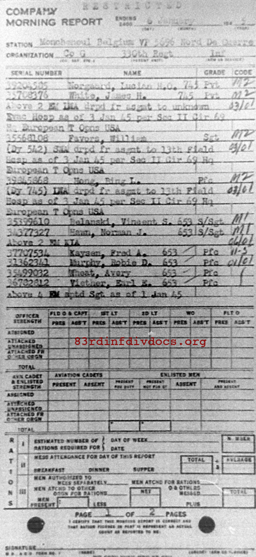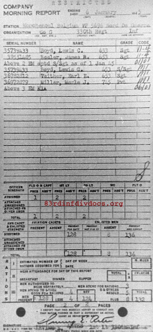 | Unit | G Company, 330th Infantry Regiment, 83rd Infantry Division |