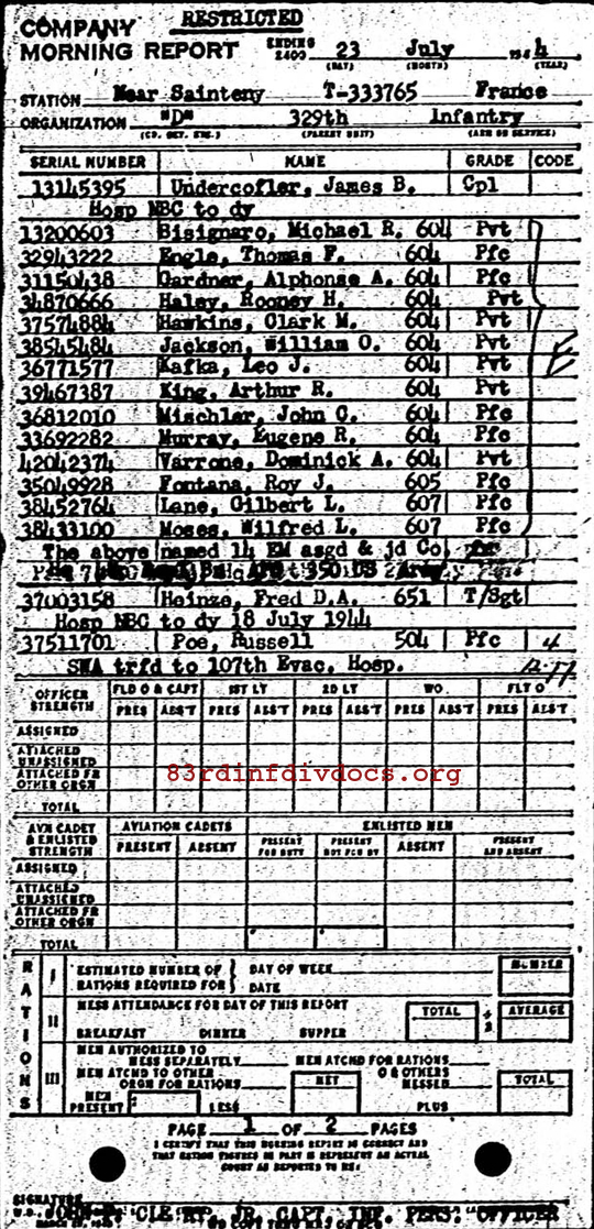 | 1944-07-23 | PFC | Assigned and joined from 48th Replacement Battalion as of July 23, 1944 | 604 | D / 329 | view page |