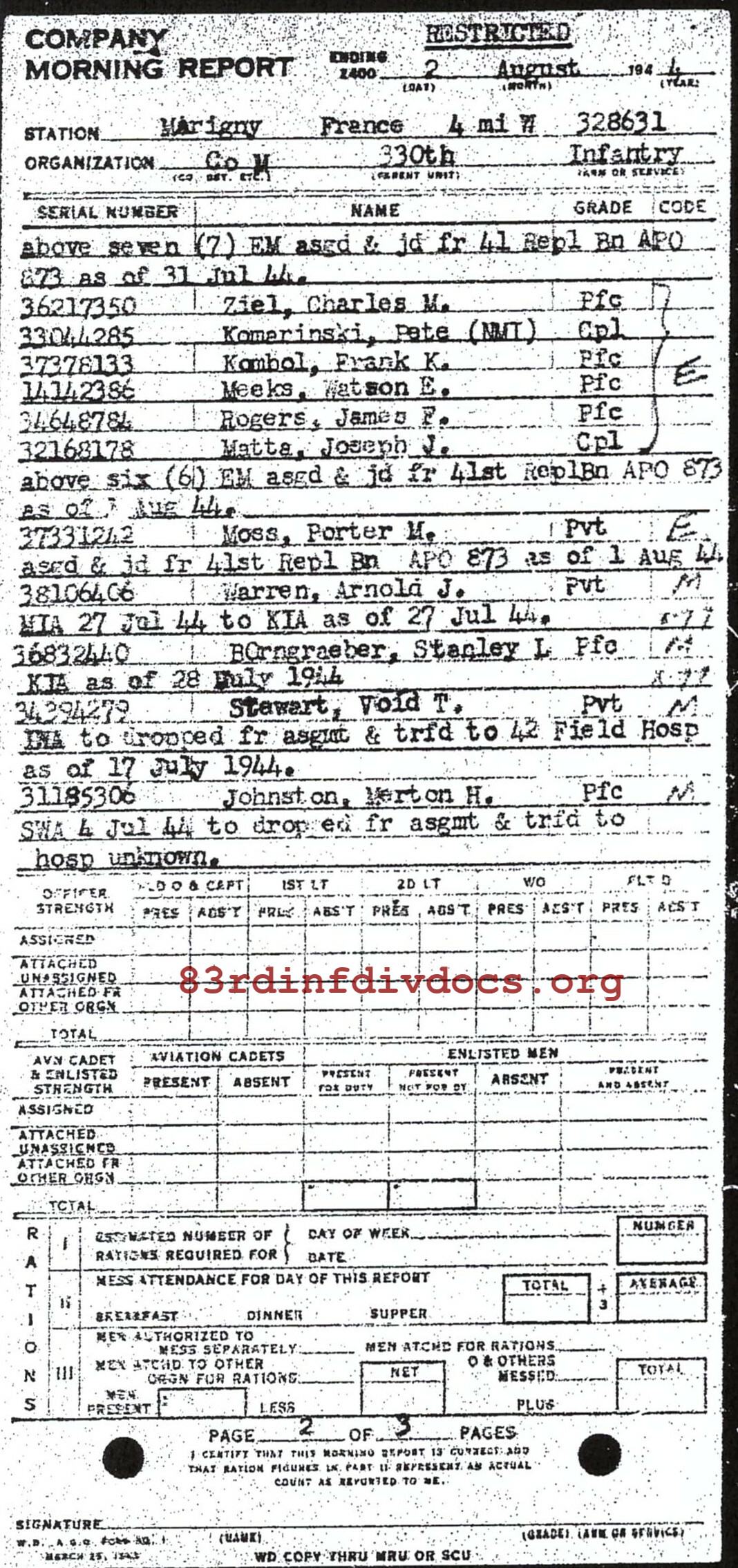| 1944-07-11 | PFC | Assigned and joined from 48th Replacement Battalion as of July 7, 1944 | M / 330 | view page | |