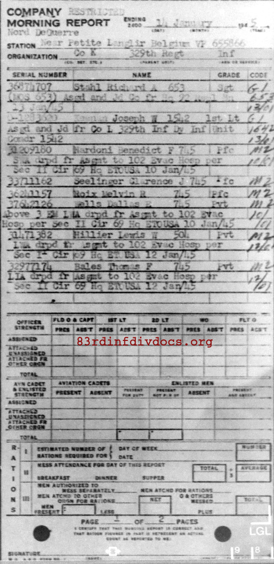 Assigned and joined from 92nd Replacement Battalion as of January 13, 1945 |
