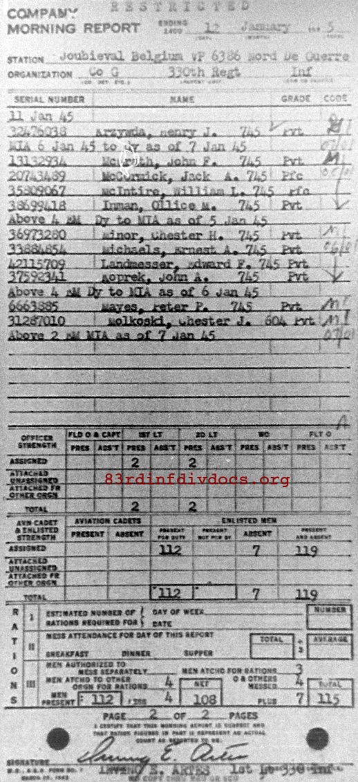 | 1945-01-12 | PVT | Missing in action as of January 6, 1945 | 745 | G / 330 | view page |