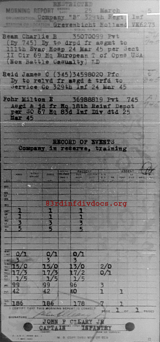 | 1945-03-25 | PVT | Assigned and joined from 18th Reinforcement Depot as of March 25, 1945 | 745 | B / 329 | view page |