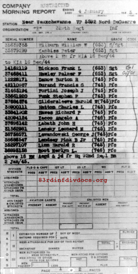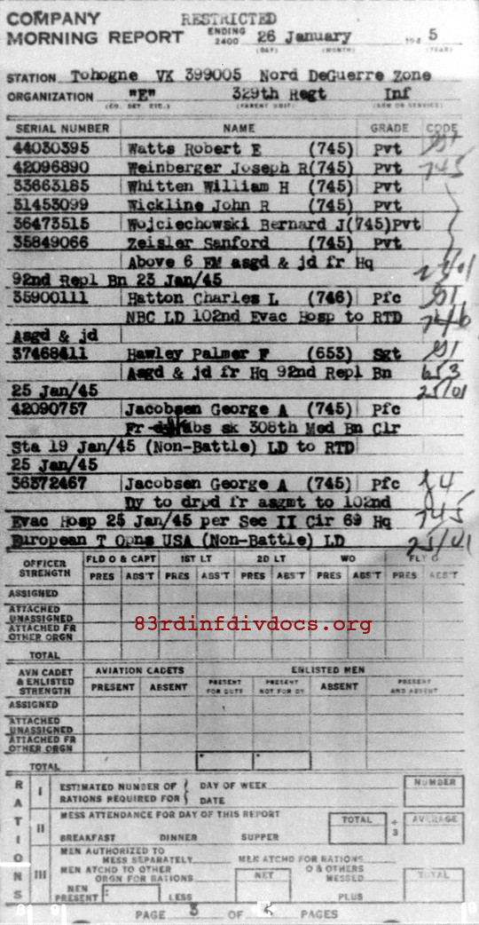 | Unit | 329th Infantry Regiment, 83rd Infantry Division |