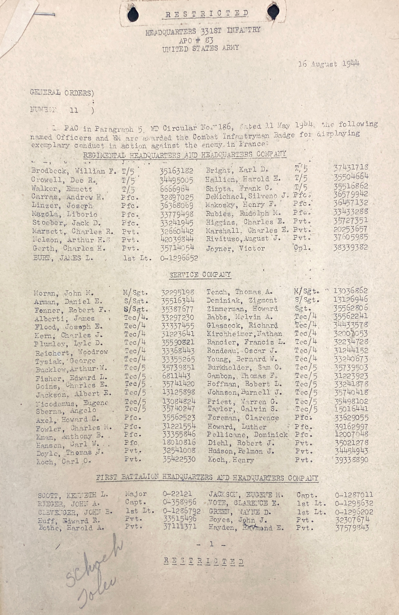 | 331 / 1944 / #11 | PVT |