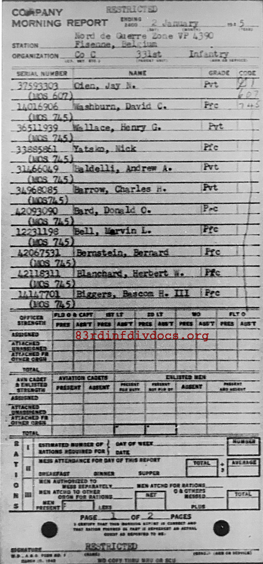 | Unit | 331st Infantry Regiment, 83rd Infantry Division |
