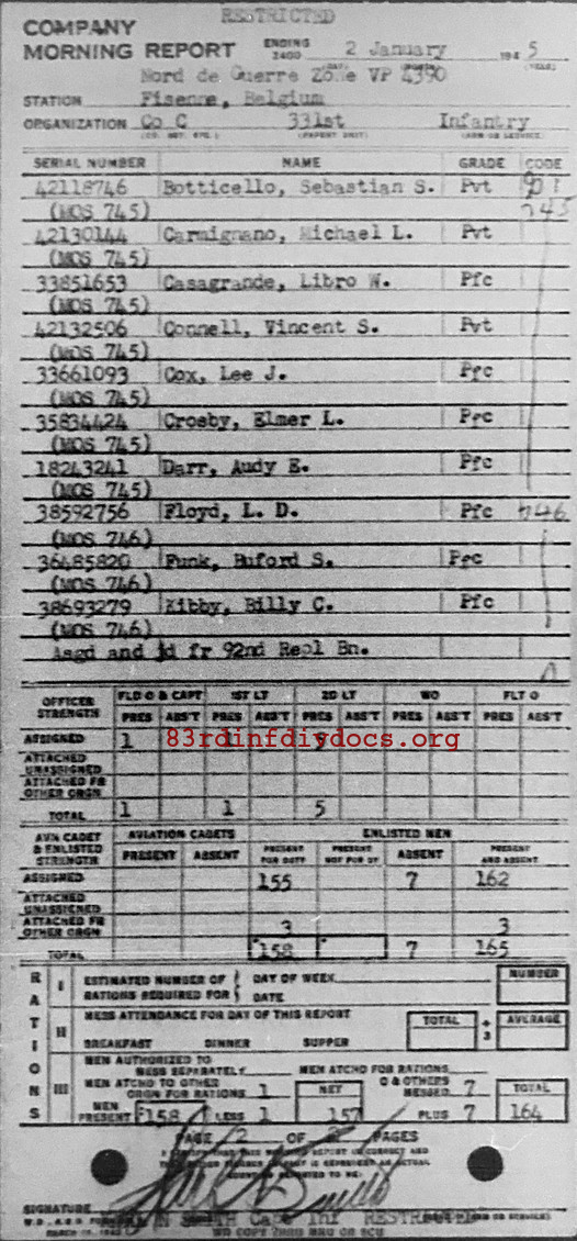 | 1945-01-02 | PVT | Assigned and joined from 92nd Replacement Battalion as of January 2, 1945 | 607 | C / 331 | view page |