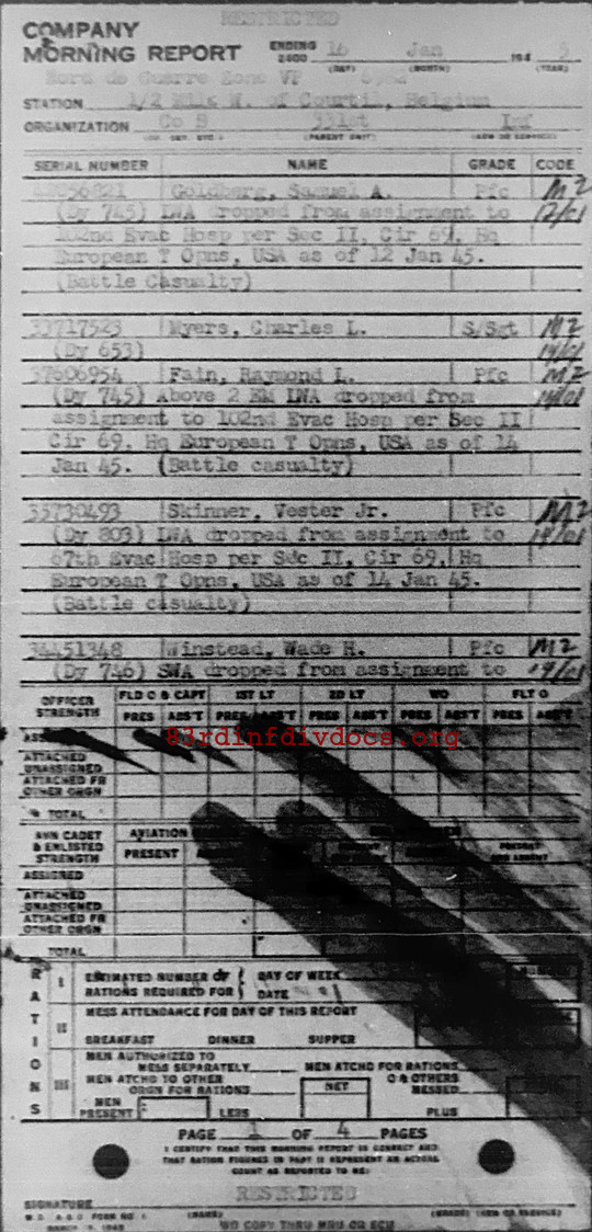 | 1945-01-16 | PFC | Lightly wounded in action and transferred to 102nd Evacuation Hospital on January 14, 1945 | 745 | B / 331 | view page |